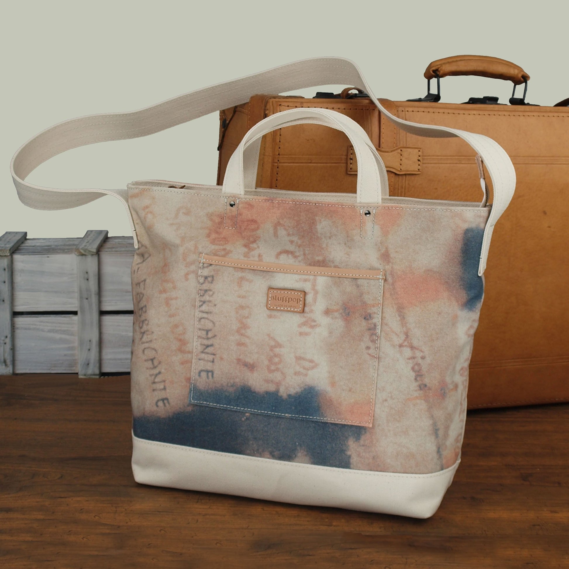 ファブリッククリエイター・佐藤達之氏が欧州の落書きをベースに作った柄をプリントした国産8号帆布のトートバッグ。サイズ感もほどよくて、ありそうでなかったいい感じの商品になりました。
