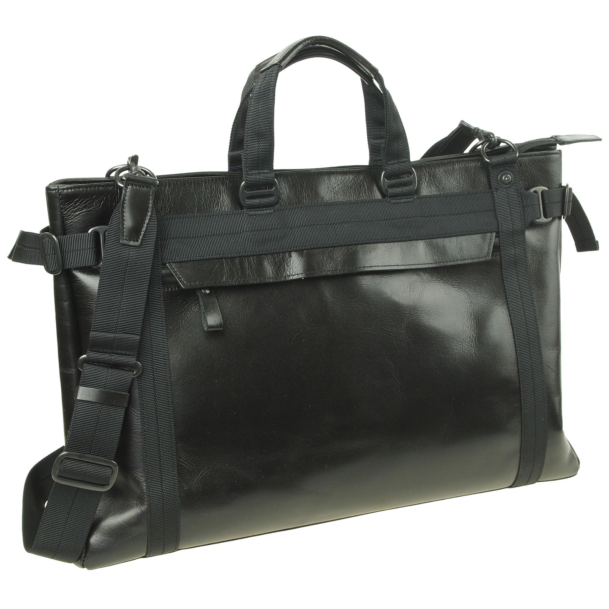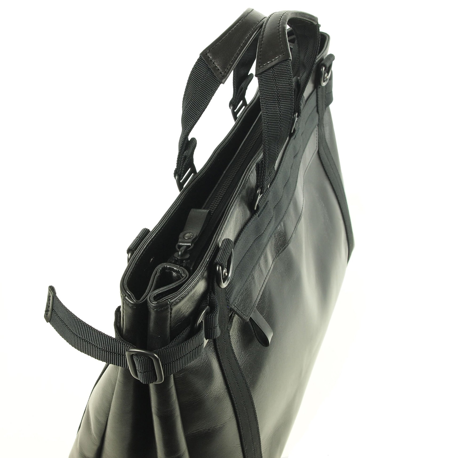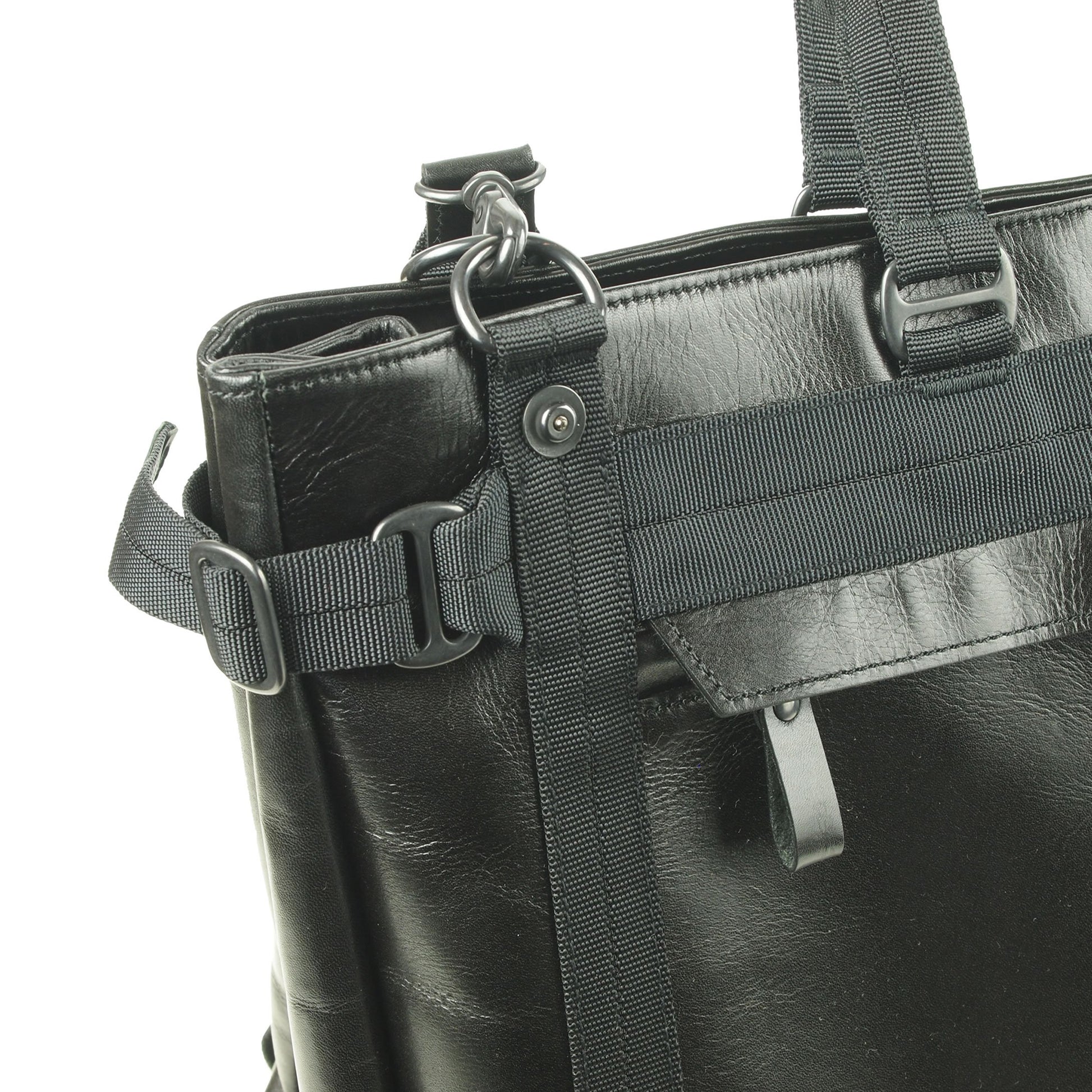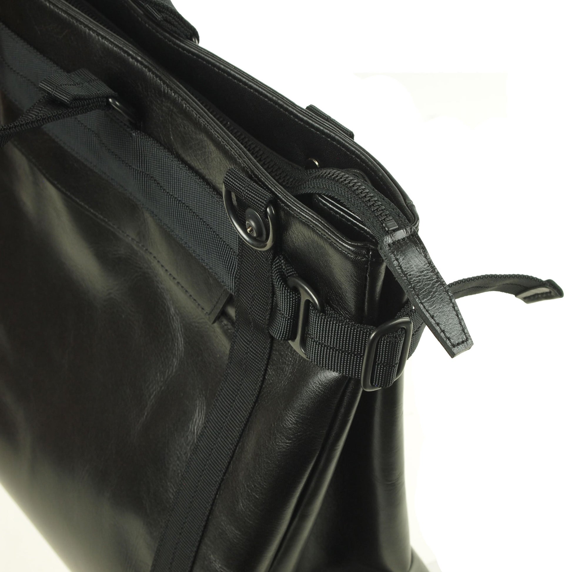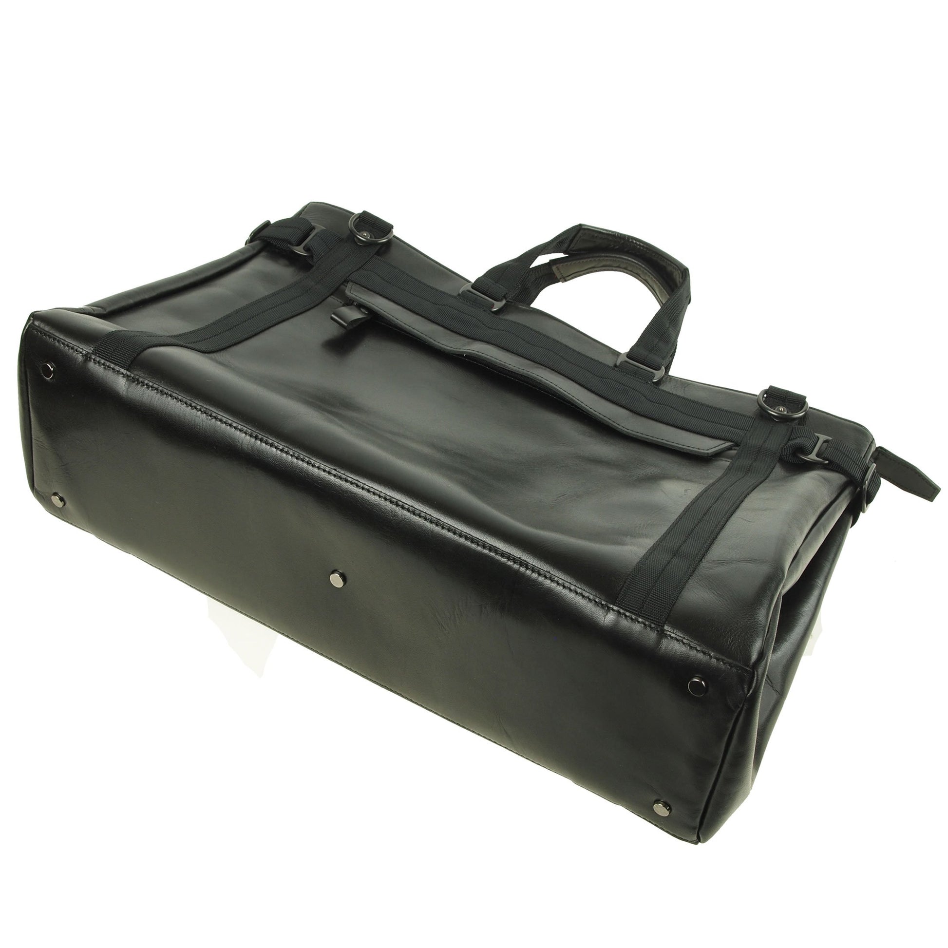 ワックス加工の牛革にナイロンテープのトリミングが新鮮。牛革とテープを組み合わせたオリジナルのハンドルは持ち易く、両サイド4つのDカンにショルダーストラップを掛けるとバランスの安定したショルダーバッグで使えるボストンバッグです。カラーはブラック。 サイズ(横×縦×マチ):45×31×13cm 重量(本体のみ):1120g 日本製 (染料仕上げの牛革使用の為、多少の色落ちがする場合が有ります)
