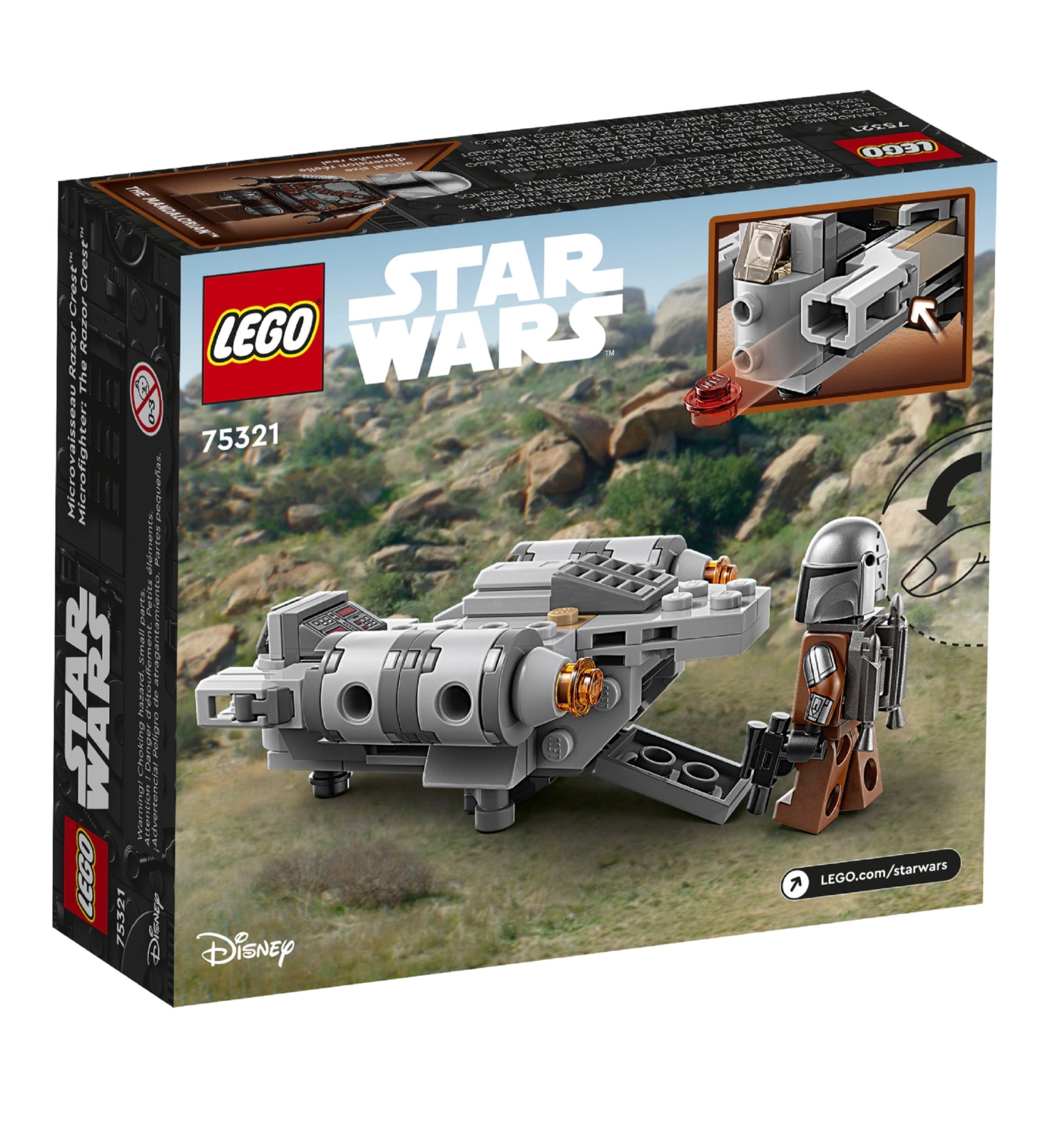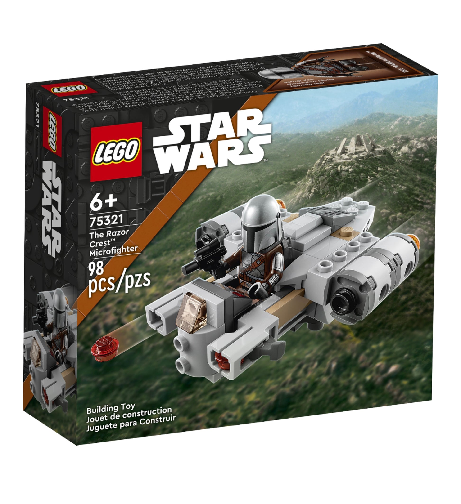 Introduce young kids to LEGO® Star Wars™ building toys with The Razor Crest Microfighter (75321). This microscale, LEGO brick version of the iconic Star Wars: The Mandalorian gunship features 2 new-for-January-2022 stud shooters and is quick to build so the action starts fast. The set also includes The Mandalorian LEGO minifigure in a Star Wars: The Mandalorian Season 2 outfit with a buildable jetpack and a blaster pistol to inspire creative play. Cool gift for ages 6 and up Thinking of buying this awesome construction toy as a gift for a LEGO beginner? No worries – easy-to-follow instructions are included. This construction model also combines perfectly with other Microfighters sets for extra play possibilities. Galaxy of fun The LEGO Group has been recreating iconic starships, vehicles, locations and characters from the Star Wars universe since 1999. LEGO Star Wars has become its most successful theme with a wide variety of premium-quality, buildable models to wow people of all ages.